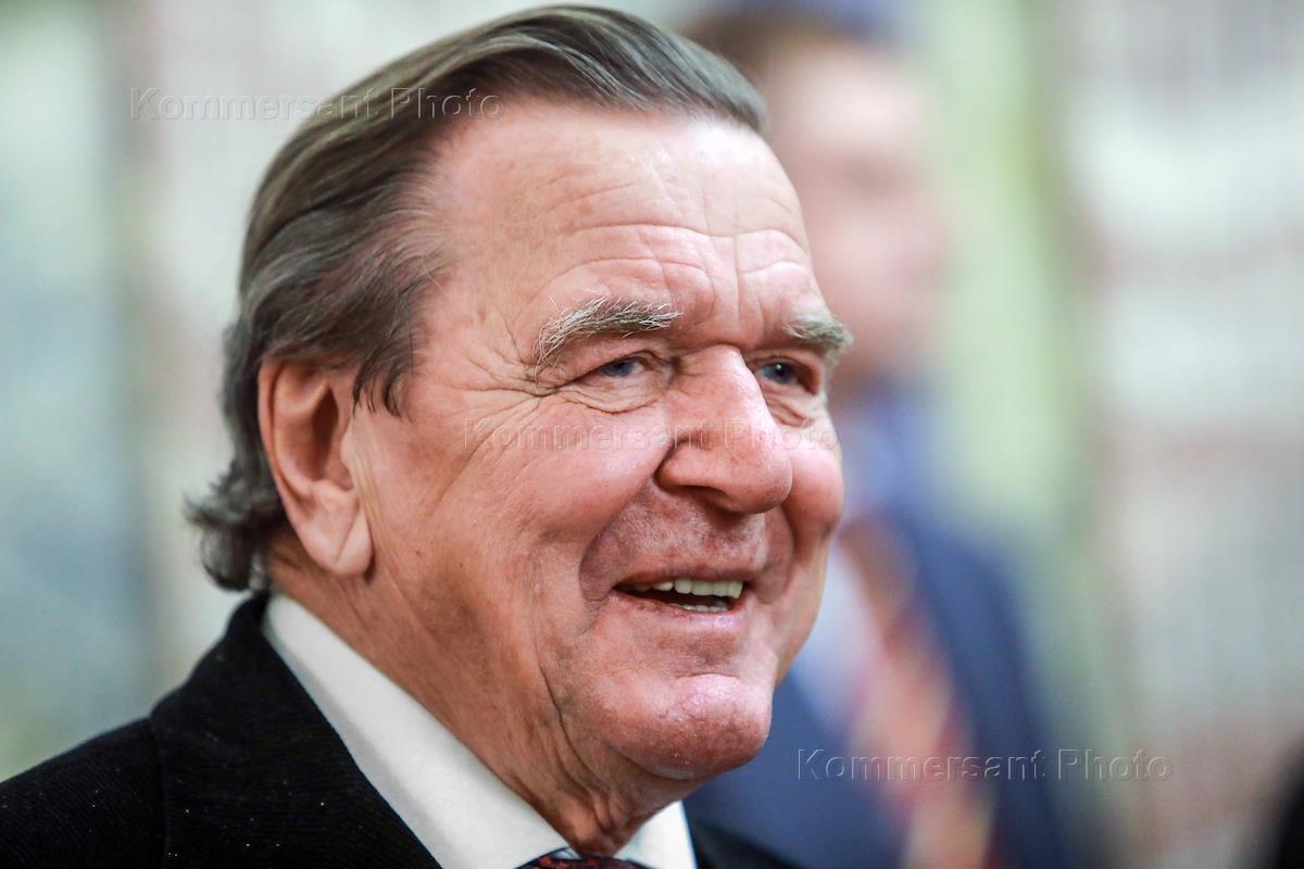Церемония открытия выставки американской художницы Сьюзан Сворц "Личный путь" в Русском музее. Бывший канцлер Германии, председатель совета директоров компании Nord Stream AG Герхард Шредер на церемонии.