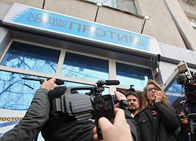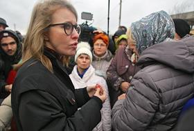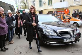 Телеведущая, главный редактор русской версии журнала L'Officiel Ксения Собчак (в центре), заявившая о намерении баллотироваться в президенты, перед открытием первого предвыборного штаба на улице Социалистической.