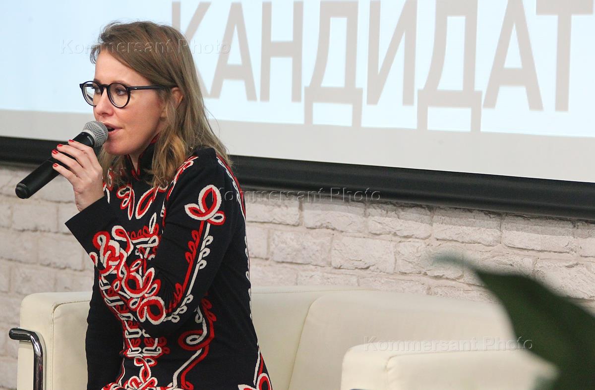 Телеведущая, главный редактор русской версии журнала L'Officiel Ксения Собчак, заявившая о намерении баллотироваться в президенты, во время открытия первого предвыборного штаба на улице Социалистической.