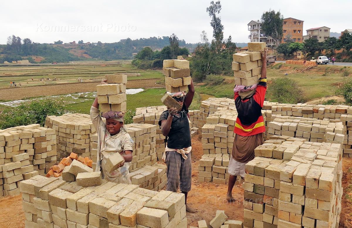 Жанровая фотография. Виды Мадагаскара. Местные жители строят дом.