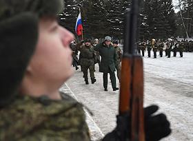 Начало учебного года в новом артиллерийском соединении Западного военного округа. Первое общее построение. Почетный вынос Государственного Флага России.