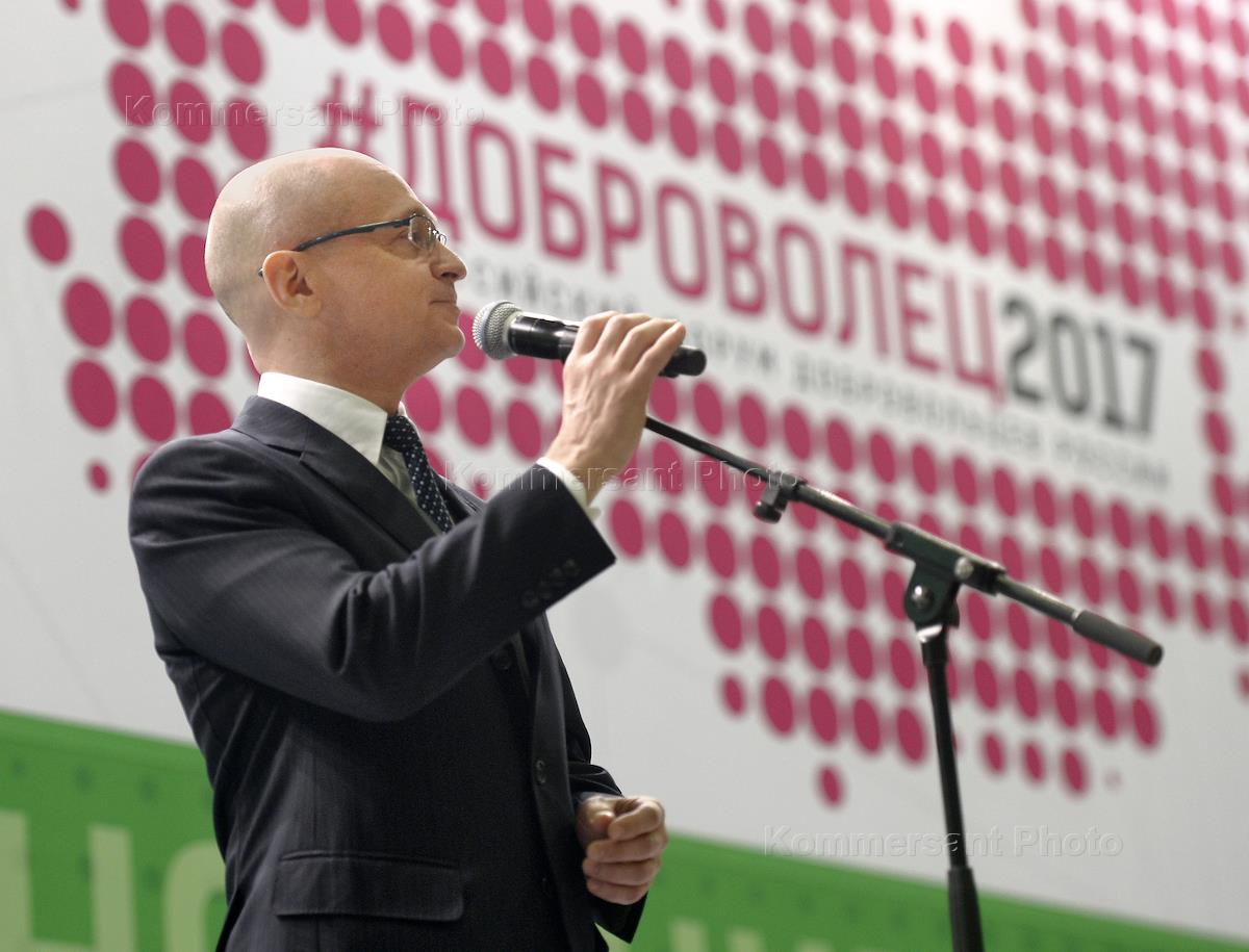Всероссийский форум "Я - доброволец" приуроченный к празднованию Дня добровольца, в "Экспоцентре". Первый заместитель руководителя Администрации президента России Сергей Кириенко во время выступления перед участниками форума.