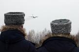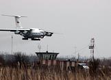 Церемония по случаю завершения формирования 235-го военно-транспортного авиационного полка воздушно-космических сил России на аэродроме "Ульяновск-Восточный". Транспортный самолет ИЛ-76МД во время посадки.