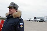 Церемония по случаю завершения формирования 235-го военно-транспортного авиационного полка воздушно-космических сил России на аэродроме "Ульяновск-Восточный". Командующий военно-транспортной авиацией ВКС России, генерал-лейтенант Владимир Бенедиктов во время церемонии.