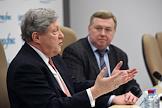 Пресс-конференция председателя Федерального политического комитета партии "Яблоко", кандидата в президенты России от партии Григория Явлинского на тему "Россия: дорога в будущее" прошла в информационном агентстве "Интерфакс". заместитель председателя партии "Яблоко" Николай Рыбаков (слева) перед началом пресс-конференции.