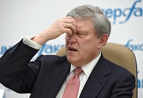 Пресс-конференция председателя Федерального политического комитета партии "Яблоко", кандидата в президенты России от партии Григория Явлинского на тему "Россия: дорога в будущее" прошла в информационном агентстве "Интерфакс". заместитель председателя партии "Яблоко" Николай Рыбаков (слева) перед началом пресс-конференции.