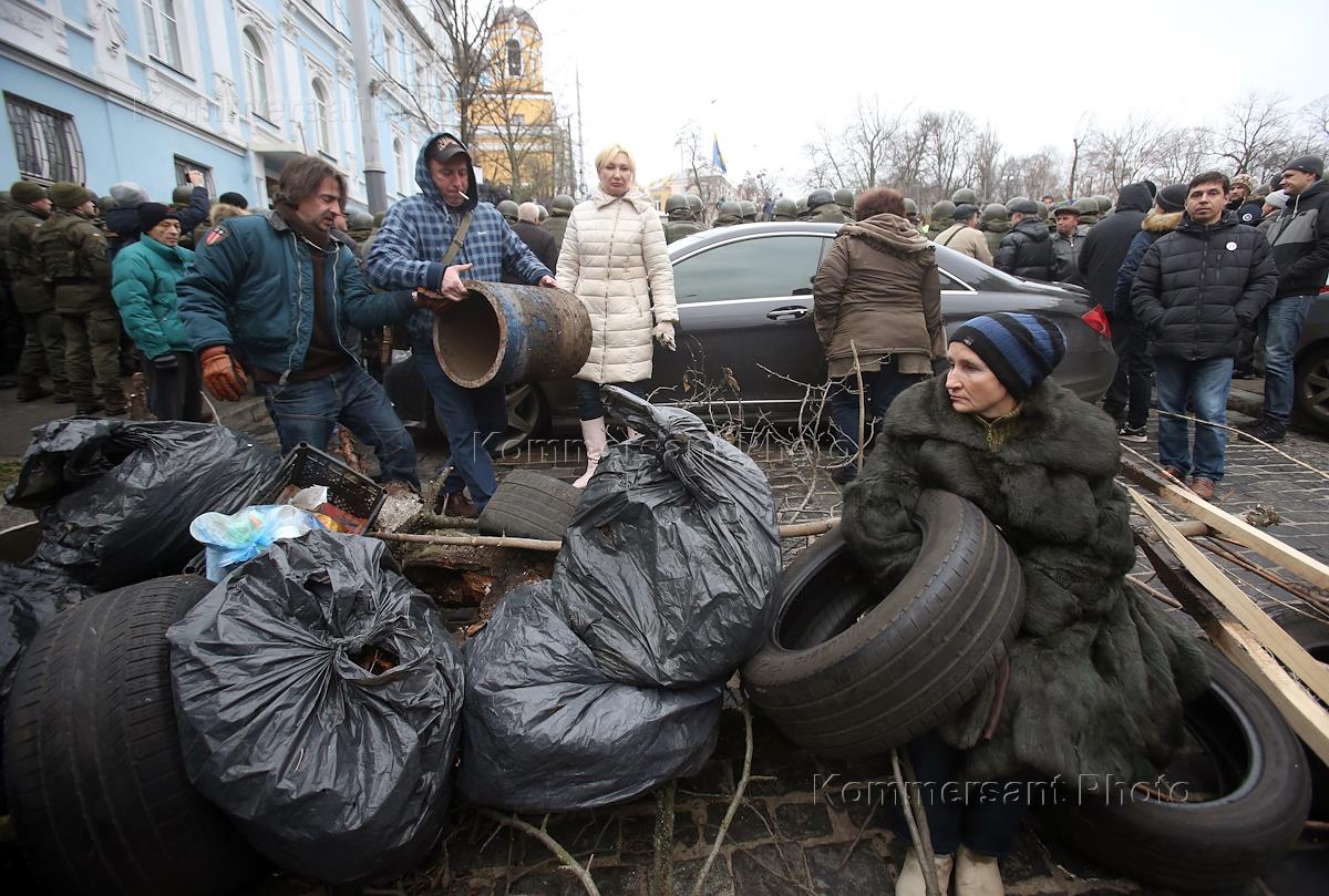 Clashes between law enforcement agencies of Ukraine and supporters of the former governor of Odessa region of Ukraine Mikhail Saakashvili, after his detention. A poster with the sign "Ukraine without oligarchs!".