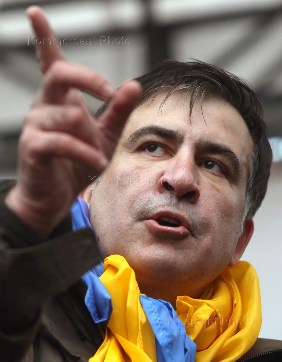 Бывший губернатор Одесской области, глава партии "Движение новых сил" Михаил Саакашвили, освобожденный с помощью сторонников после задержания сотрудниками СБУ, во время выступления в палаточном городке у здания Верховной рады.