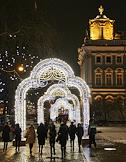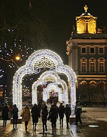 Виды Санкт-Петербурга. Новогодняя иллюминация в сквере Зимнего дворца.