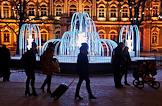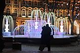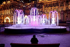 Виды Санкт-Петербурга. Новогодняя иллюминация в сквере Зимнего дворца. Светящийся фонтан.