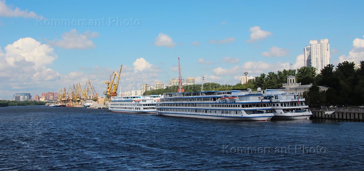 Северный (Химкинский) речной вокзал. Посадка туристов на круизный теплоход.