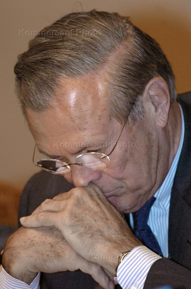 US Defence Secretary Donald Rumsfeld takes part in a press conference