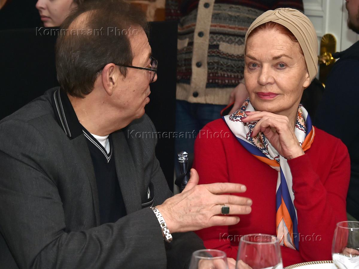 День Рождения фонда "Артист". Праздничный вечер прошел при поддержке Breguet в Новом Пространстве Театра Наций. Актриса Ингеборга Дапкунайте (слева) и член попечительского совета фонда "Артист", актер Леонид Ярмольник (справа) во время вечера.