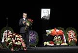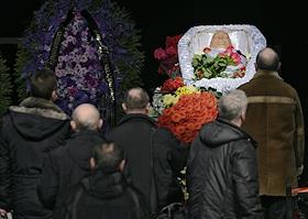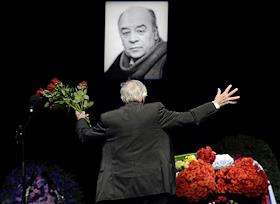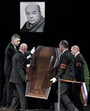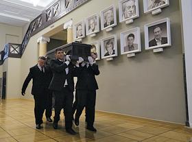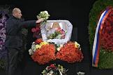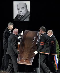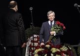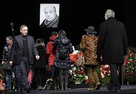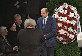 Церемония прощание с актером Леонидом Броневым прошла в Московском театре "Ленком". Руководитель департамента культуры города Москвы Александр Кибовский во время церемонии прощания.