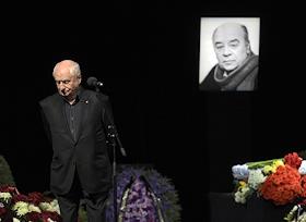 Церемония прощание с актером Леонидом Броневым прошла в Московском театре "Ленком". Художественный руководитель Московского театра "Ленком" Марк Захаров во время церемонии прощания.