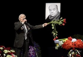 Церемония прощание с актером Леонидом Броневым прошла в Московском театре "Ленком". Художественный руководитель Театра имени М.Ермоловой, актер Олег Меньшиков во время церемонии.