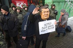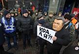 Несколько десятков сторонников лидера партии "Рух новых сил", лидера партии "Рух нових сил", бывшего президента Грузии Михаила Саакашвили у здания Печерского районного суда города Киева на улице Крещатик.