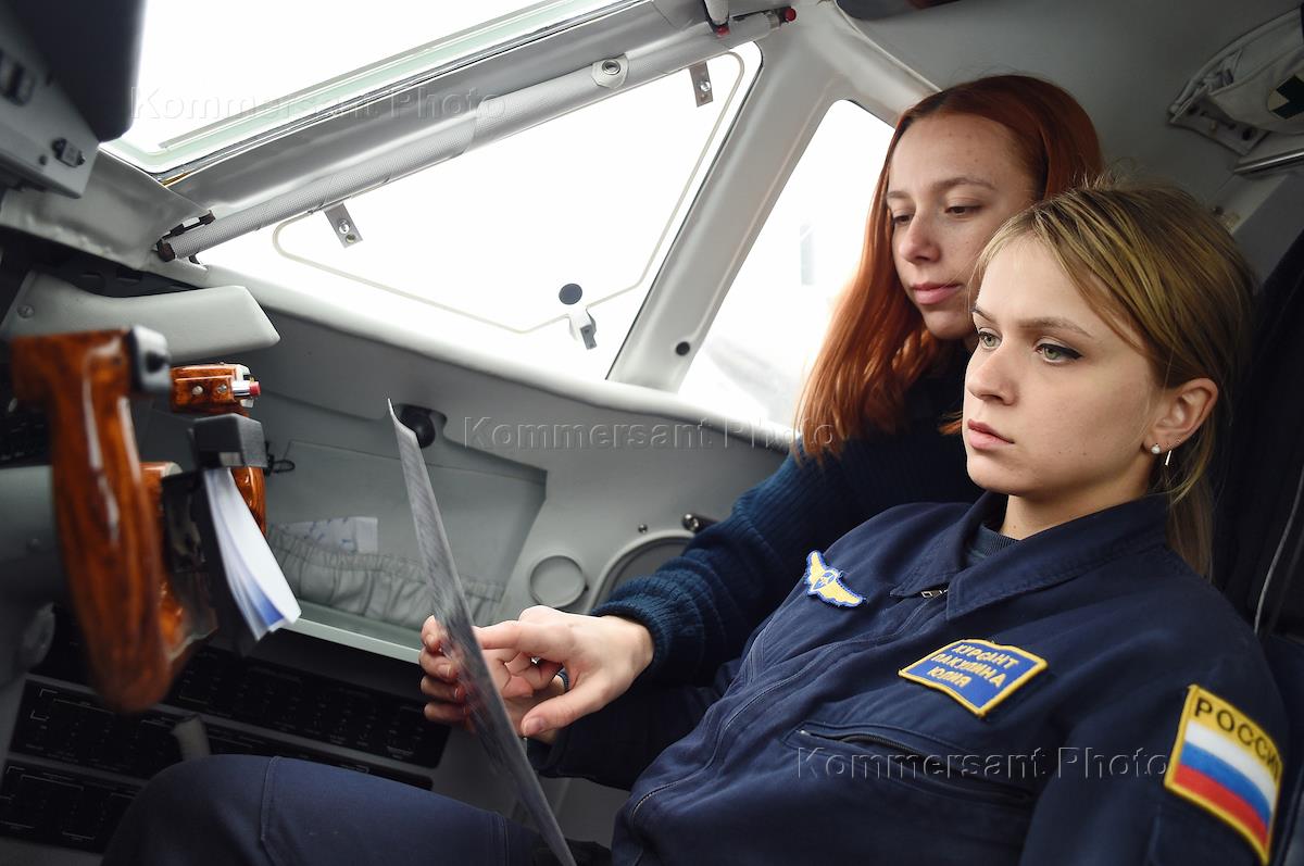 Сасовское имени Героя Советского Союза Тарана Г.А. летное училище гражданской авиации - филиал Федерального государственного бюджетного образовательного учреждения высшего образования "Ульяновский институт гражданской авиации имени Главного маршала авиации Б.П. Бугаева" (СЛУ ГА филиал ФГБОУ ВО УИ ГА). Девушки-курсанты во время занятий в кабине самолета.
