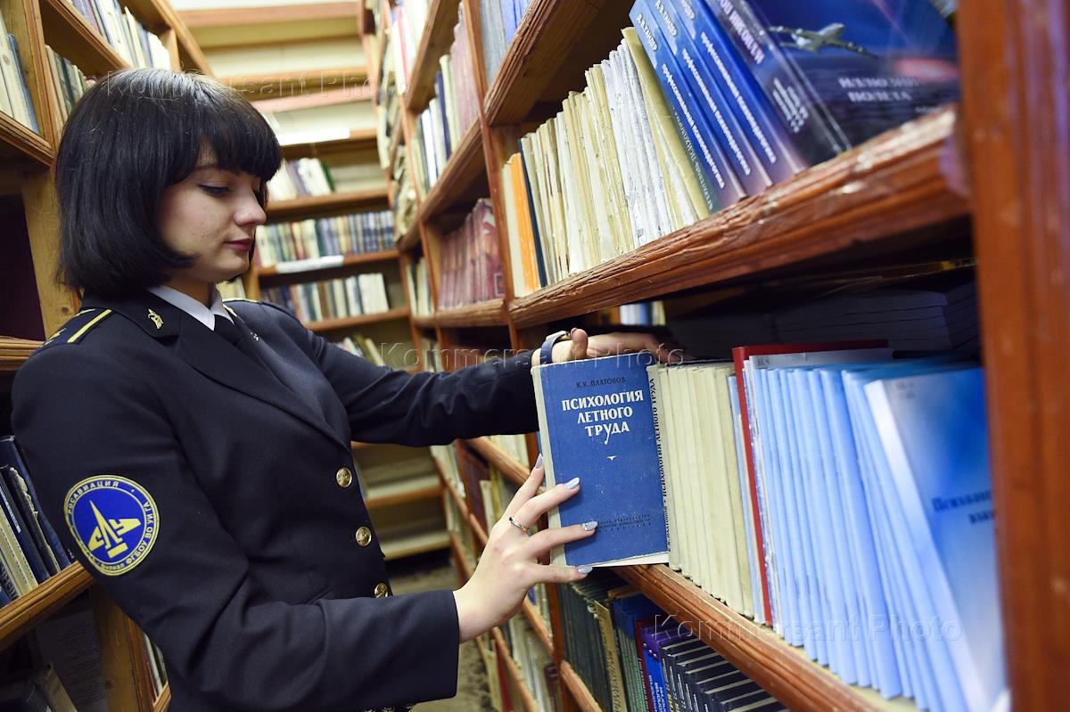 Сасовское имени Героя Советского Союза Тарана Г.А. летное училище гражданской авиации - филиал Федерального государственного бюджетного образовательного учреждения высшего образования "Ульяновский институт гражданской авиации имени Главного маршала авиации Б.П. Бугаева" (СЛУ ГА филиал ФГБОУ ВО УИ ГА). Девушка-курсант в библиотеке училища.