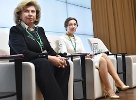 Семинар с участием уполномоченных по правам человека и по правам ребенка в субъектах России прошел в Корпоративном университете Сбербанка. Уполномоченный по правам человека в России Татьяна Москалькова (слева) и уполномоченный при президенте России по правам ребенка Анна Кузнецова (справа) во время семинара.