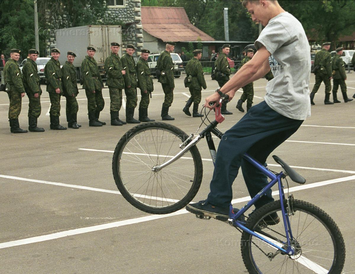 Soldiers in line order and a bicyclist took part in the international carnival.
