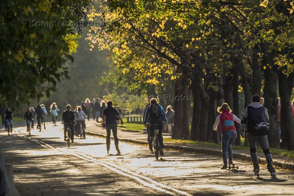 Виды Москвы. Отдыхающие на Воробьевых горах.