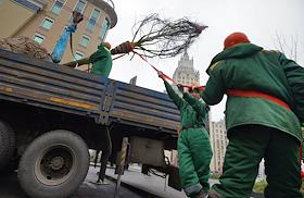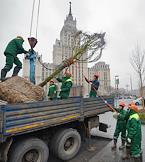 Высадка деревьев на Садовом кольце в районне площади Красных ворот.