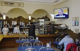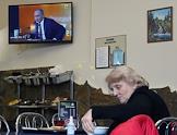 Жанровые фото. Просмотр 13-ой ежегодной пресс-конференции президента России Владимира Путина в столовой.