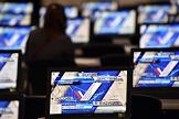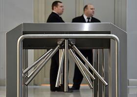 "Форум действий" Общероссийского народного фронта (ОНФ) в международном выставочном центре "Крокус Экспо". Жанровая фотография. Турникет для прохода.