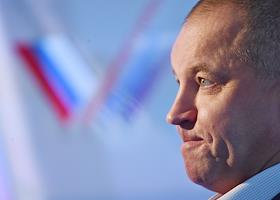 Первый заместитель председателя комитета Государственной думы России по экономической политике, промышленности, инновационному развитию и предпринимательству Владимир Гутенев на "Форуме действий" Общероссийского народного фронта (ОНФ) в международном выставочном центре "Крокус Экспо".