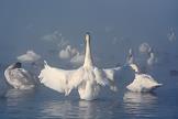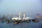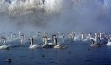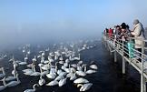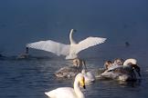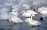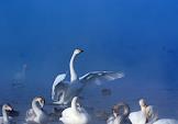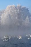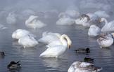 Зимовка лебедей на озере "Лебединое". Плакат, запрещающий выход на лед.