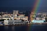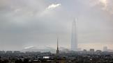 Виды Санкт-Петербурга. "Лахта Центр" и жилые кварталы на намывной территории.
