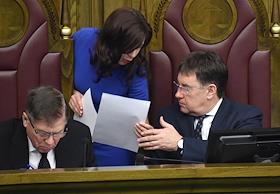 Пленарное заседание Верховного Суда России. Председатель Верховного суда России Вячеслав Лебедев (слева) и председатель Совета судей России Виктор Момотов (справа) во время заседания.