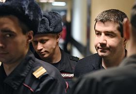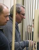 Бывший глава Республики Коми Вячеслав Гайзер (справа), арестованный по делу об организации преступного сообщества и мошенничестве, во время заседания в Замоскворецком районном суде.