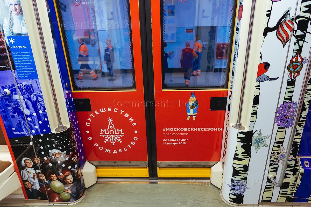Жанровая фотография. Поезд московского метрополитена "Путешествие в Рождество".
