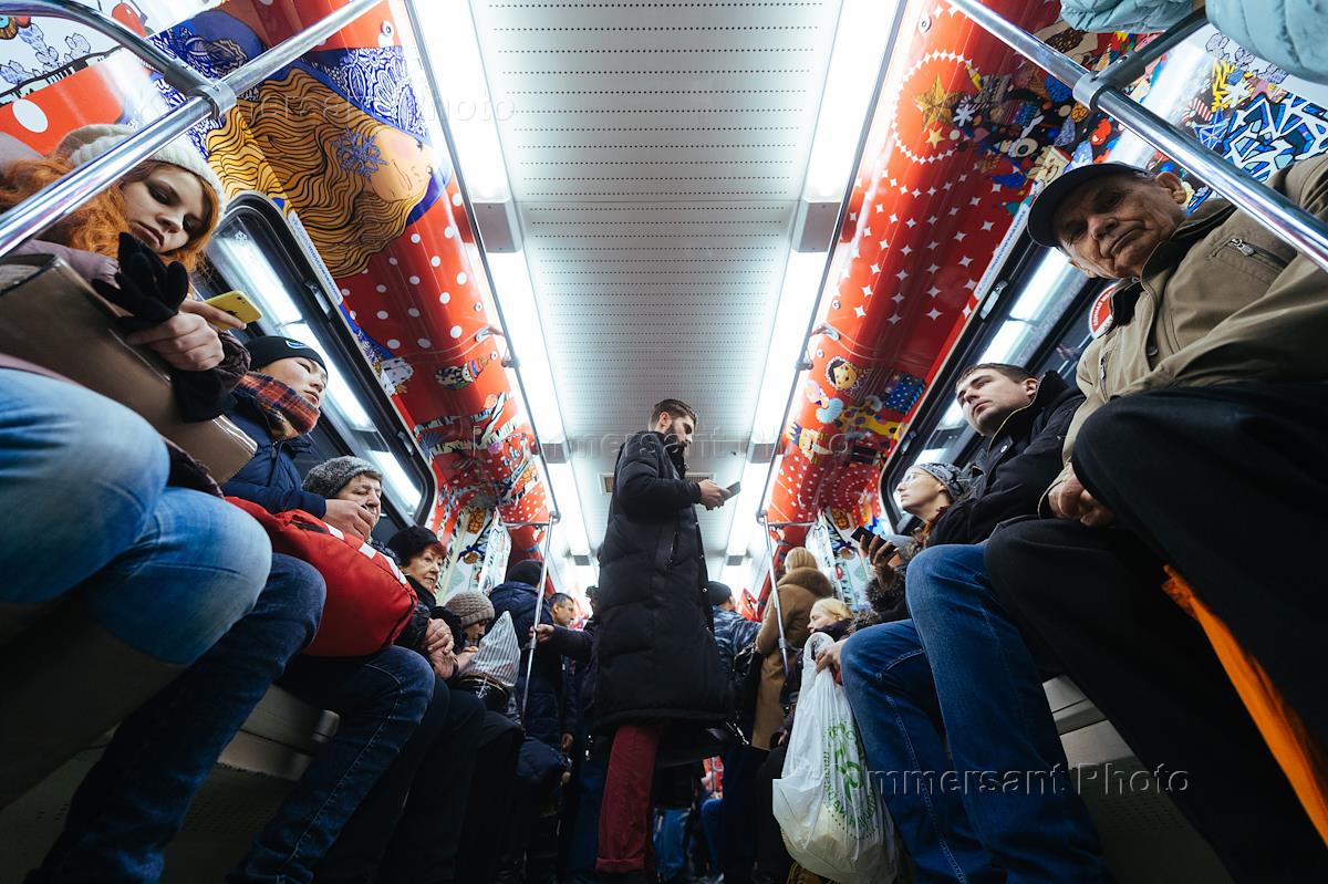 Жанровая фотография. Пассажиры поезда московского метрополитена "Путешествие в Рождество".