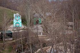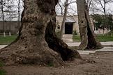 Мавзолей Ходжа Амона в окружении чинар. За невольный "стриптиз" в народе чинару прозвали "бесстыдницей". Подобно змее дерево каждый год сбрасывать кору, совершенно оголяясь.