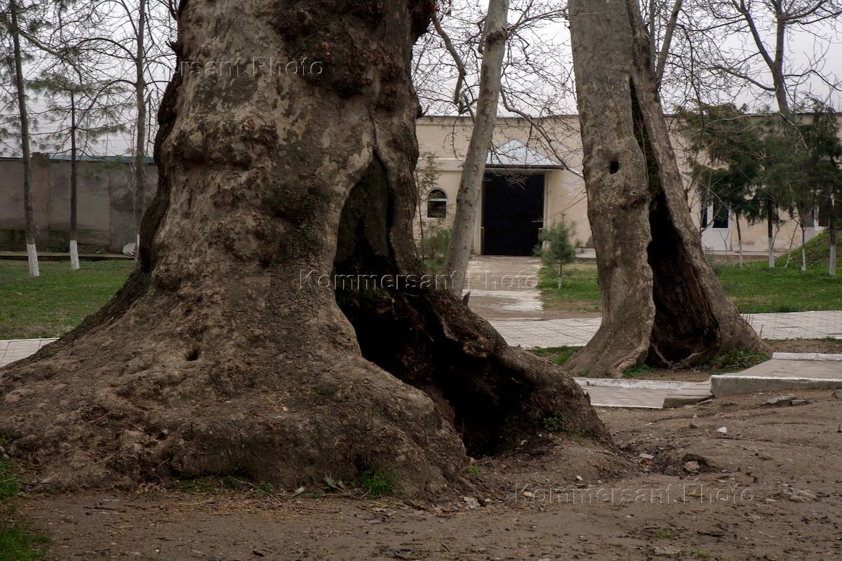 Почитаемая чинара на территории мавзолея Ходжа Амона. Материнский ствол в центре сгнил, из того же корня выросли "детки".