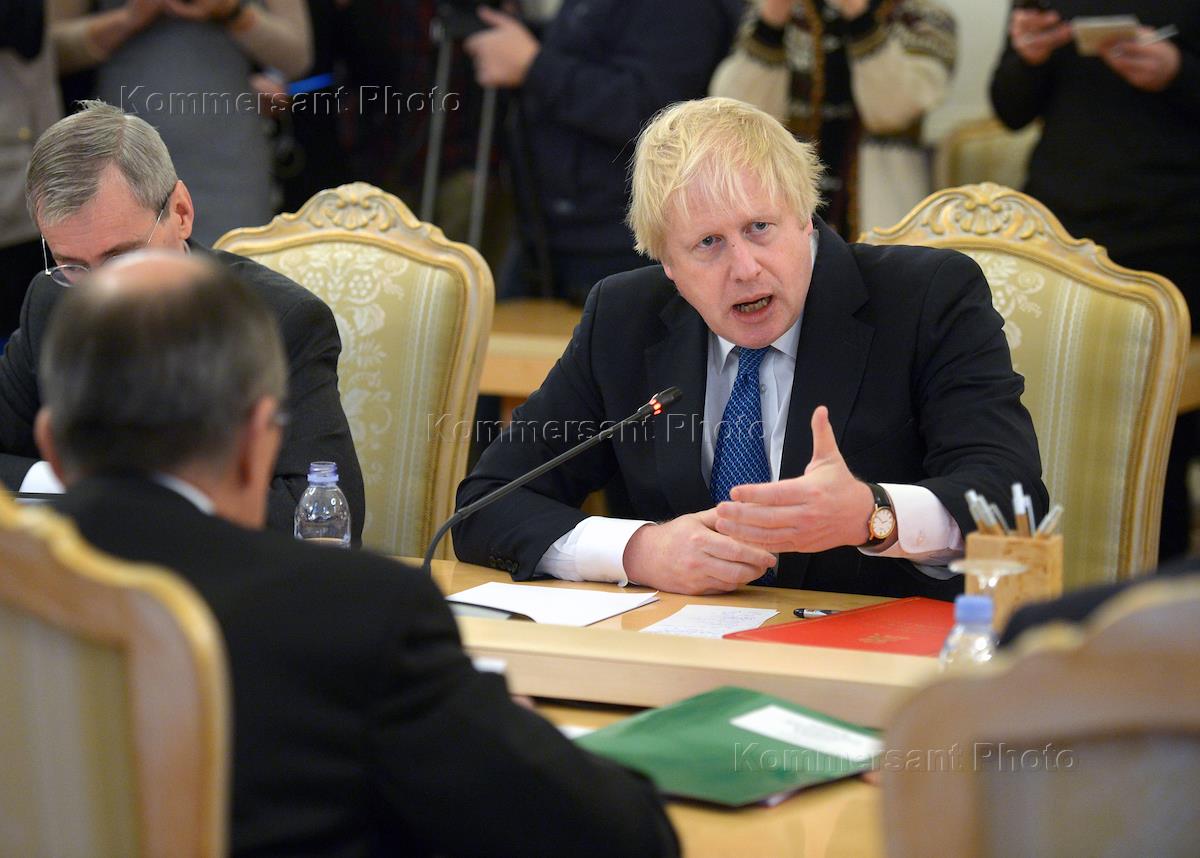 Министр иностранных дел Великобритании Борис Джонсон во время встречи с министром иностранных дел России Сергеем Лавровым в Доме приемов МИД России.