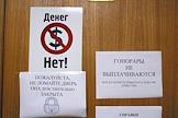 На двери висят объявления "Пожалуйста, не ломайте дверь, она действительно закрыта!", "Денег $ нет!" и "Гонорары не выплачиваются. Когда начнется выплата неизвестно!".