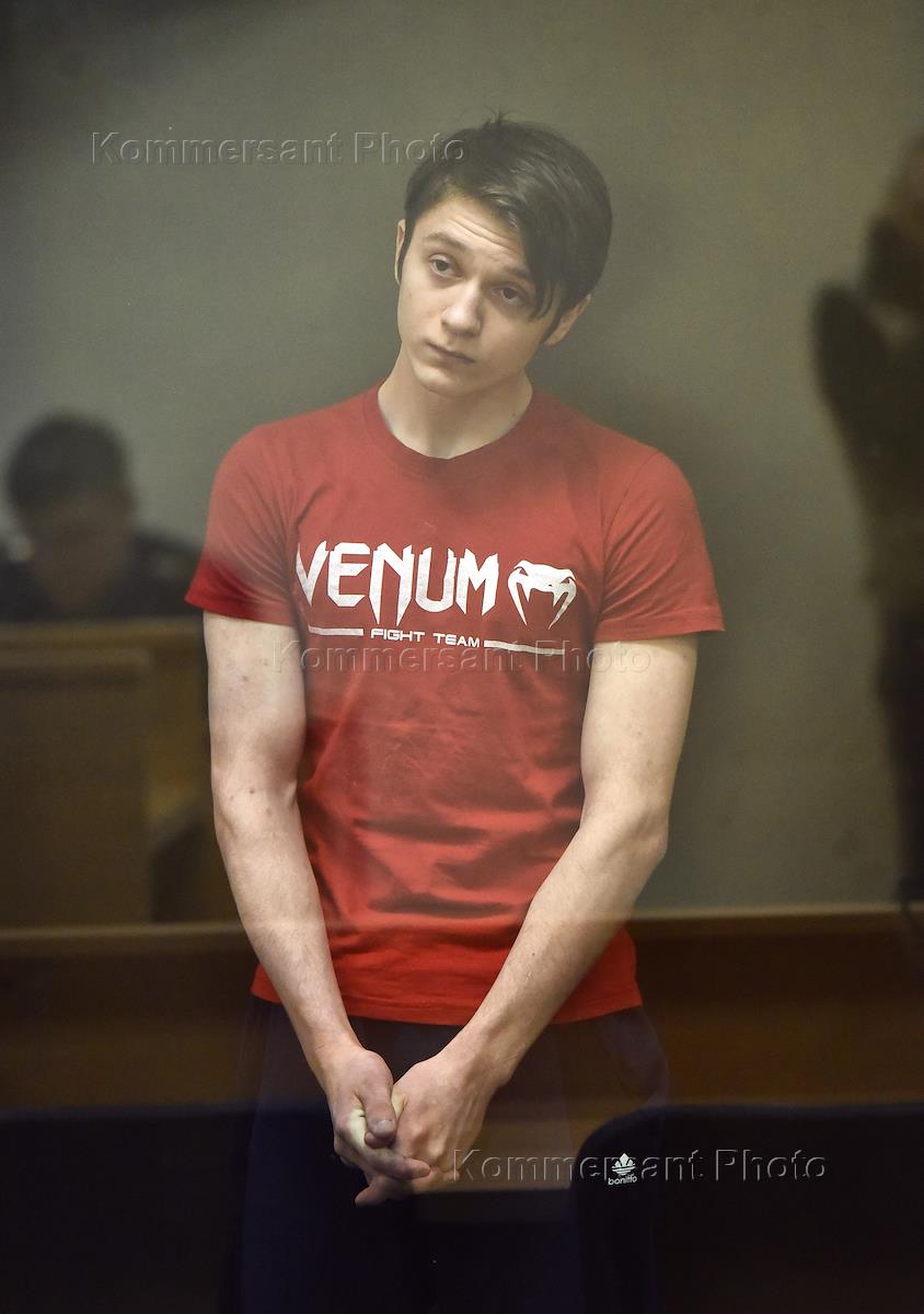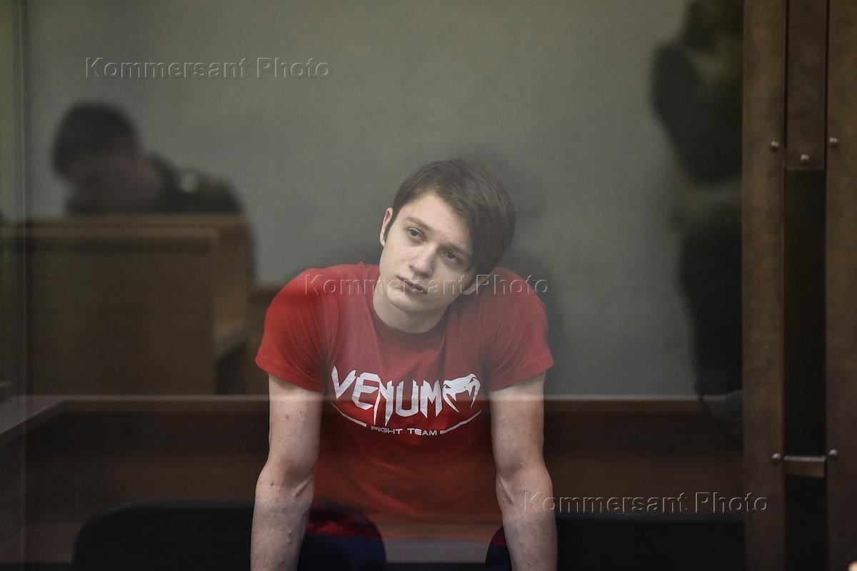 Обвиняемый в содействии террористической деятельности и приготовлении к терракту, курсант академии имени Можайского Вадим Осипов во время заседания Ленинградского окружного военного суда.