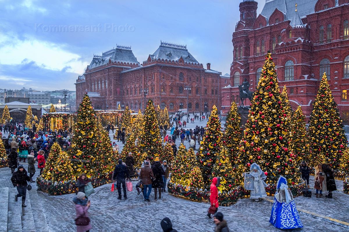 Виды Москвы. Новогоднее убранство города. Ярмарка на Манежной площади.