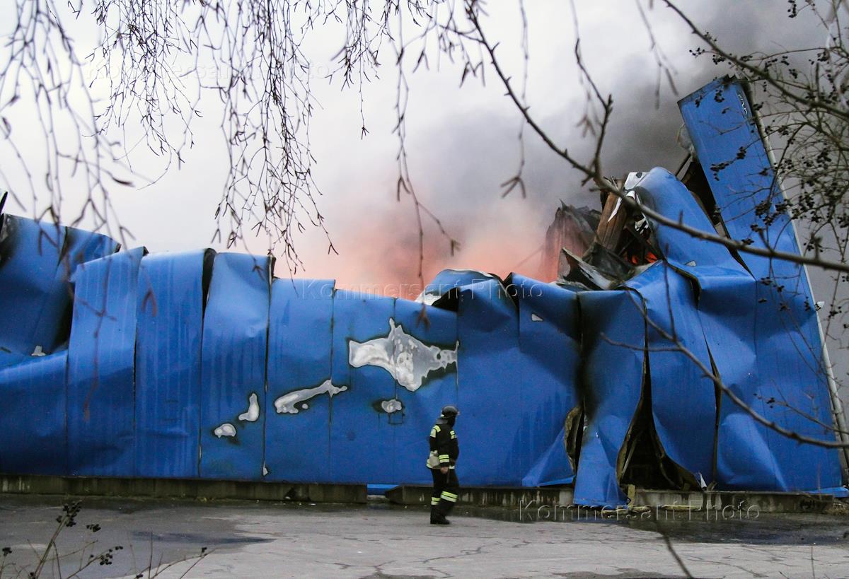 Пожар складских помещений на Камской улице в Калининграде. Пожарные во время тушение склада с алкоголем, площадь которого составляет 1200 квадратных метров.