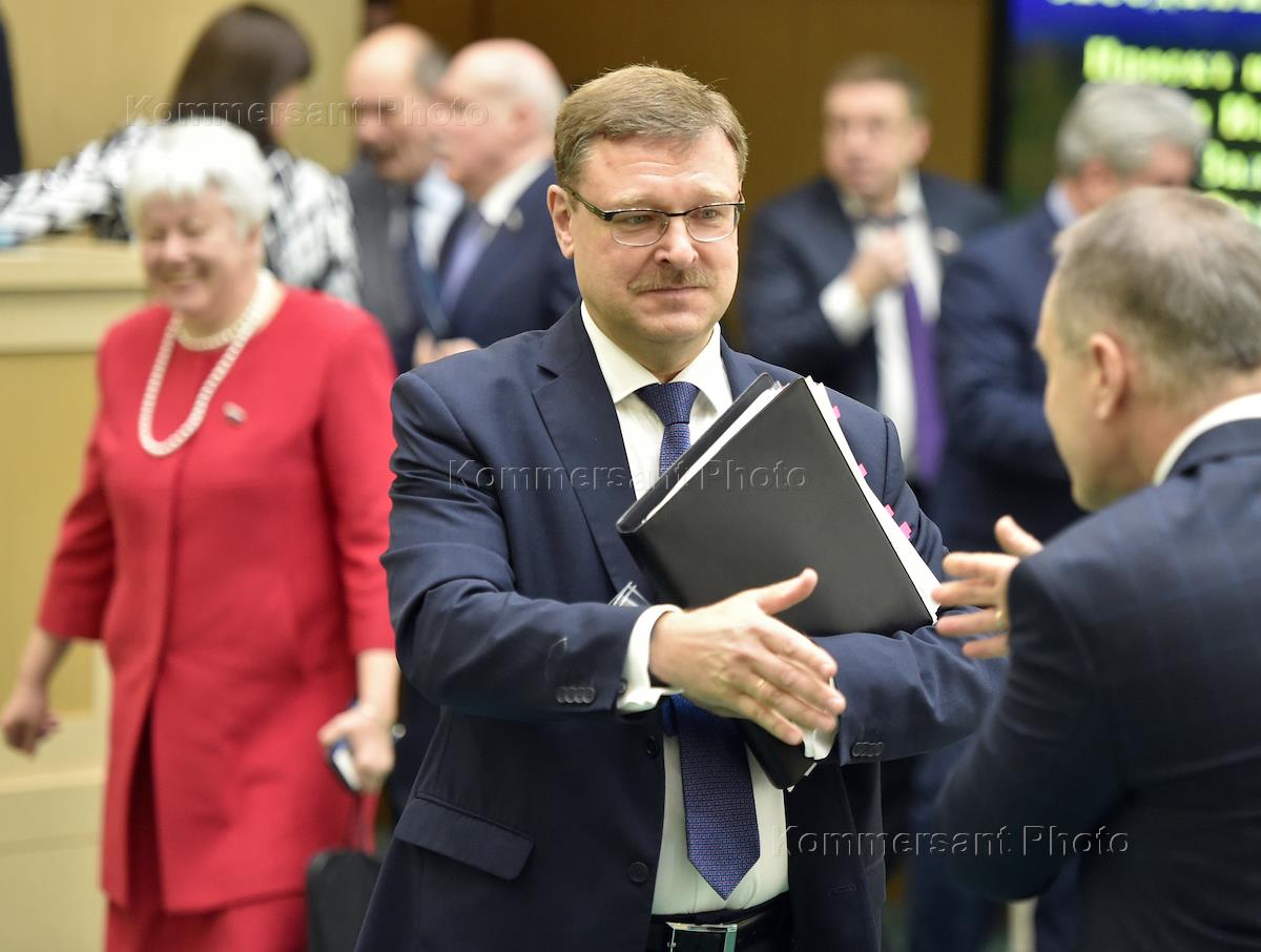 Пленарное заседание Совета Федерации (СФ) России. Представитель в СФ России от исполнительного органа государственной власти Республики Мордовия Сергей Кисляк (слева) и представитель в СФ России от исполнительного органа государственной власти Республики Марий Эл Константин Косачев (справа) во время заседания.