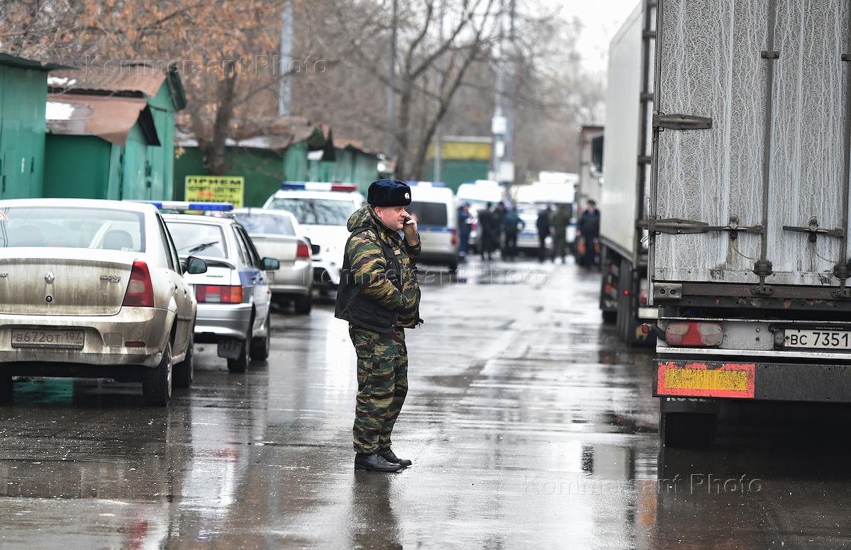 Сотрудники правоохранительных органов на месте захвата заложников на фабрике "Меньшевик".