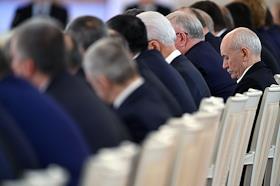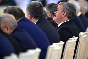 Заседание Государственного совета по вопросам повышения инвестиционной привлекательности регионов прошло в Кремле. Глава Республики Башкортостан Рустэм Хамитов во время заседания.