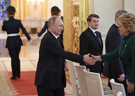 Заседание Государственного совета по вопросам повышения инвестиционной привлекательности регионов прошло в Кремле. Слева направо: президент России Владимир Путин, помощник президента России Игорь Левитин и председатель Совета Федерации России Валентина Матвиенко перед началом заседания.