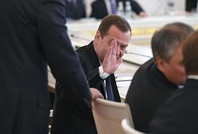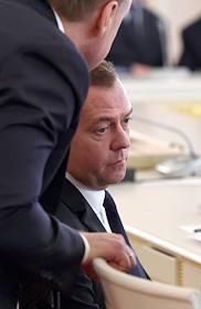 Заседание Государственного совета по вопросам повышения инвестиционной привлекательности регионов прошло в Кремле. Председатель правительства России Дмитрий Медведев перед началом заседания.