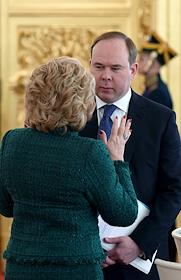 Заседание Государственного совета по вопросам повышения инвестиционной привлекательности регионов прошло в Кремле. Руководитель администрации президента России Антон Вайно (слева) и председатель Совета Федерации России Валентина Матвиенко (справа) перед началом заседания.
