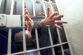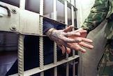 Зона для пожизненного заключения. Руки в наручниках просунутые сквозь решетку.